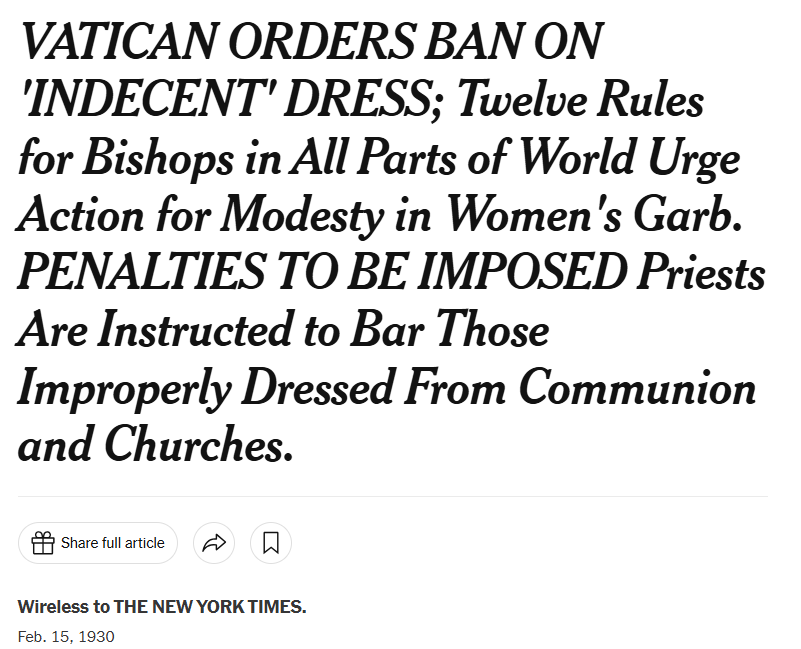 “XI. The diocesan Council of Vigilance, mentioned in the declaration of the Holy Office, 22 March 1918, shall at least once every year treat especially of the ways and means of providing effectively for modesty in women’s dress.