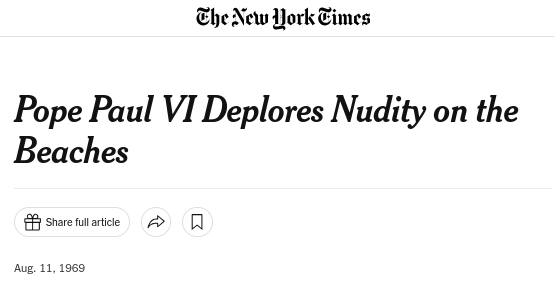 'Feeling for the dignity of the human body prevents people from wishing themselves or others to be turned through anonymous nakedness into mere objects,' the pope said.”